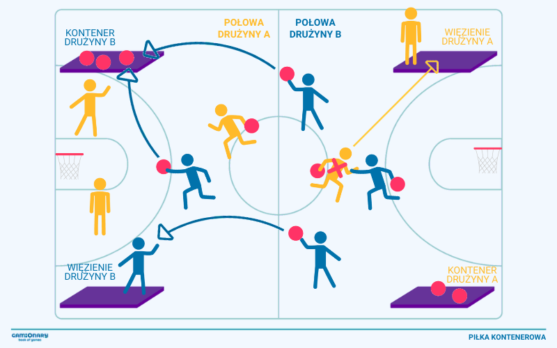 Celem drużyn jest wrzucenie jak największej ilości piłek do swoich kontenerów.