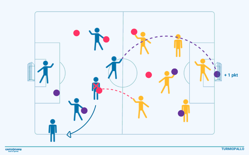 Wprowadź na boisko piłki w 2 różnych kolorach (np. czerwone i fioletowe).