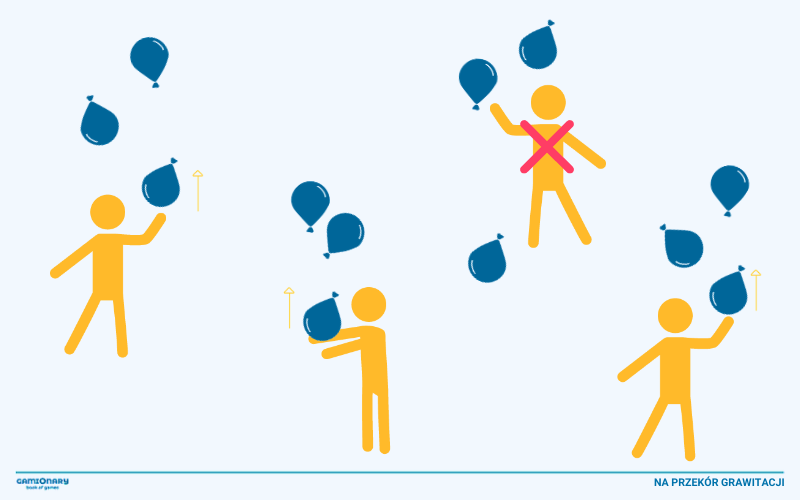 - Na sygnał każdy gracz wyrzuca swoje 3 balony w powietrze, które musi utrzymać jak najdłużej.
