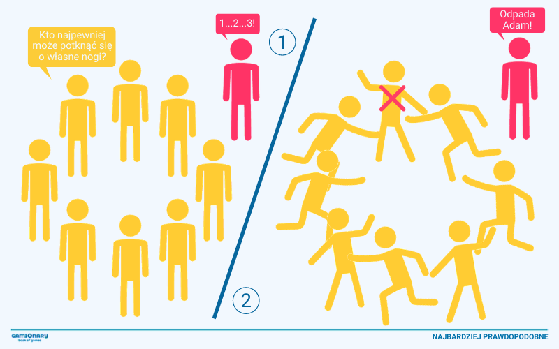 - Wybrana drużyna zaczyna. Wybiera jedną osobę z drużyny.