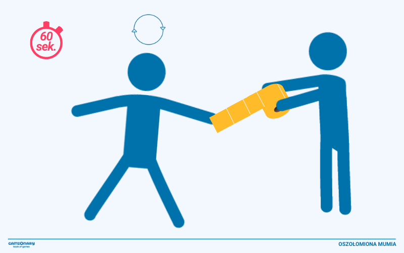 - Na sygnał osoba, która jest mumią trzyma w jednej ręce końcówke rolki papieru i zaczyna się obracać.