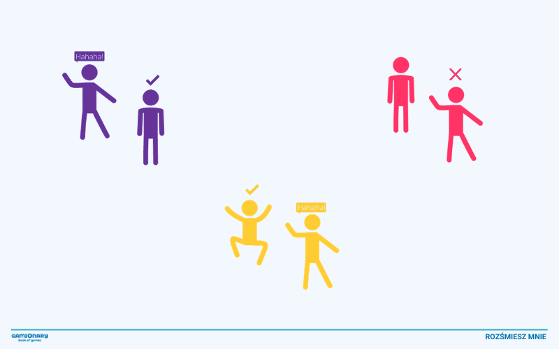 - Zadaniem jednej osoby z zespołu jest rozśmieszenie w określonym czasie drugiej osoby.