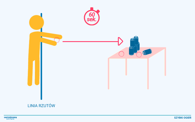 - Ustal linię rzutu około 4-5 kroków od stolika, na którym ustawiasz piramidę z puszek.