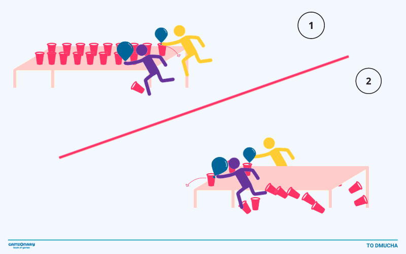 - Ustaw około 15 kubków na każdego gracza oraz ustaw je na krawędzi stołu.