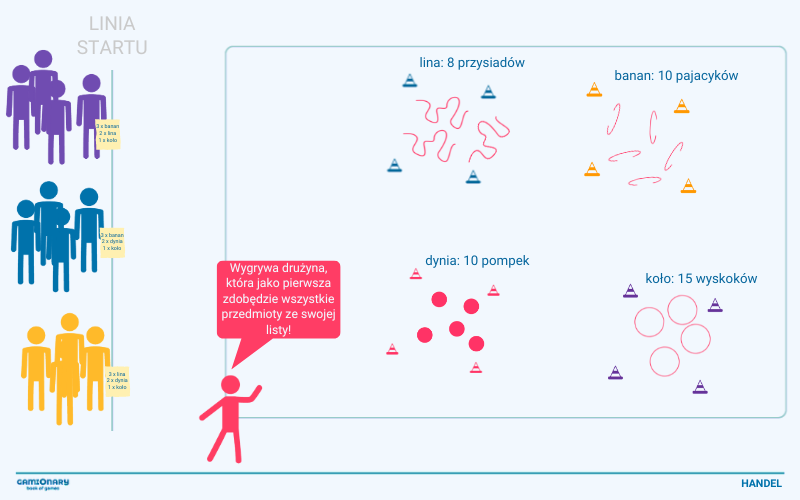 - Podziel uczestników na minimum 3 drużyny. Najlepiej 4/5